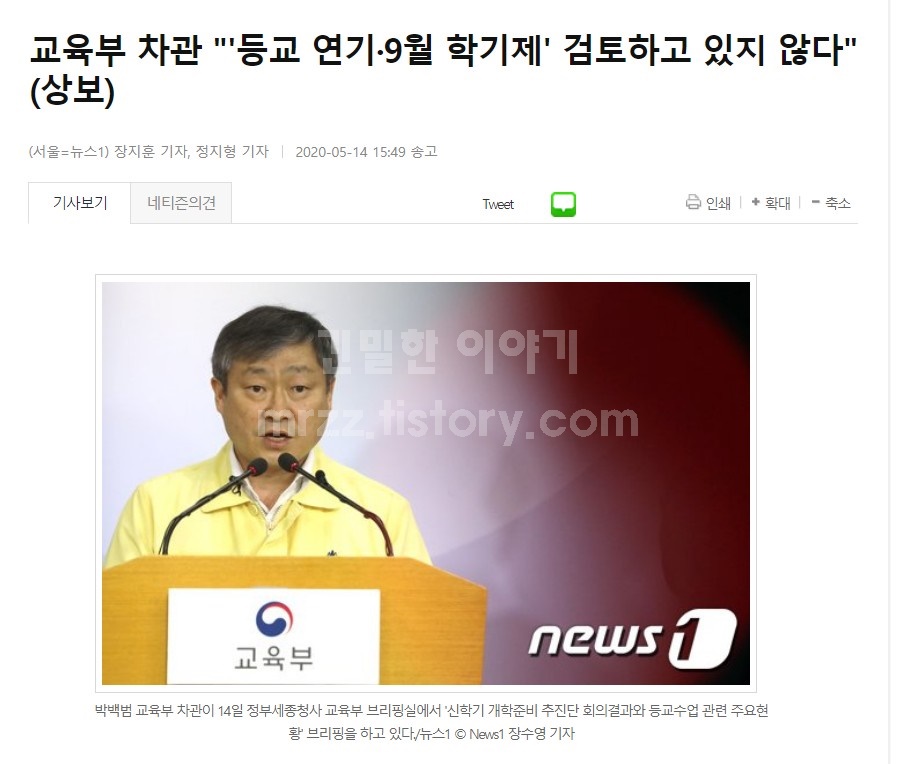 한 달을 연기하여 5월에 개학하려 했으나 이마저 힘들어지니 아예 이참에 미국과 유럽처럼 '9월 학기제'를 시행하자는 의견이 나오고 있다고 합니다.