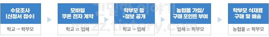 ④ 공급방식 : 학부모가 농협 몰 회원가입 후 포인트 지원 시 구매 가능, 순차적 가정 배송